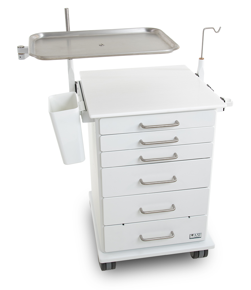 This high quality modular procedure cart provides treatment room flexibility and is designed to complement your dental treatment equipment set up. Easily rolls into the room with implant or advanced treatment procedure instrumentation ready for use. Plug in one power cord and it powers up dual electrical outlet arrays for connected instruments. Ample drawer space allows you to keep your procedure-specific supplies, auxiliary instruments, or whatever else you may require close by without the expense or clutter of fixed cabinetry.