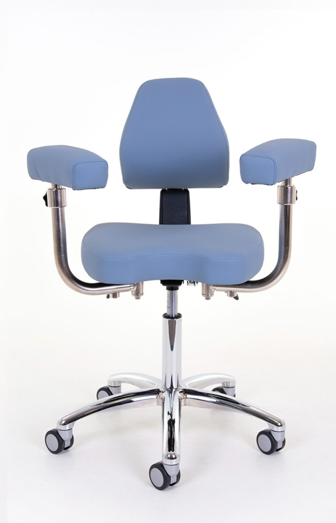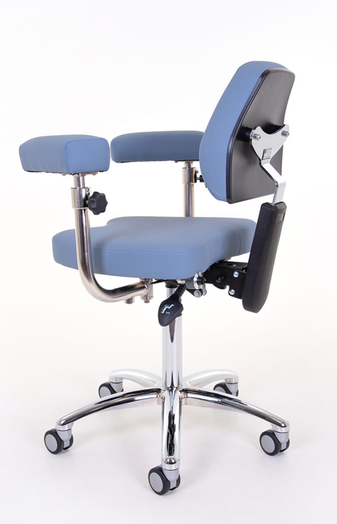 ASI’s Momentum™ specialty microscope doctor chair features an adjustable front seat angle that works in conjunction with the convex shaped back rest for a customized fit to the operator. This allows the operator to create their preferred balance of support from the thighs to the spine without rounding or overloading the spine.